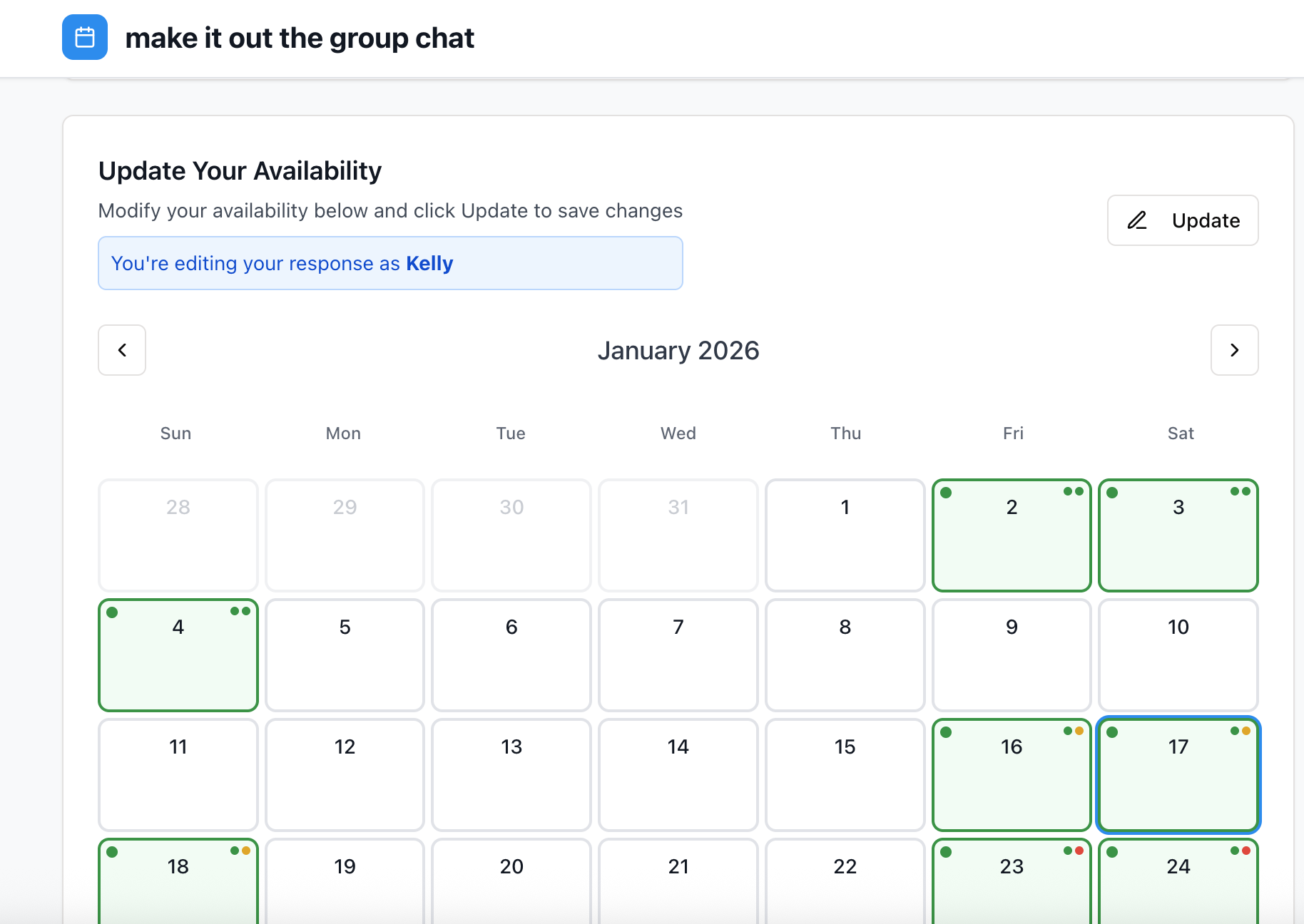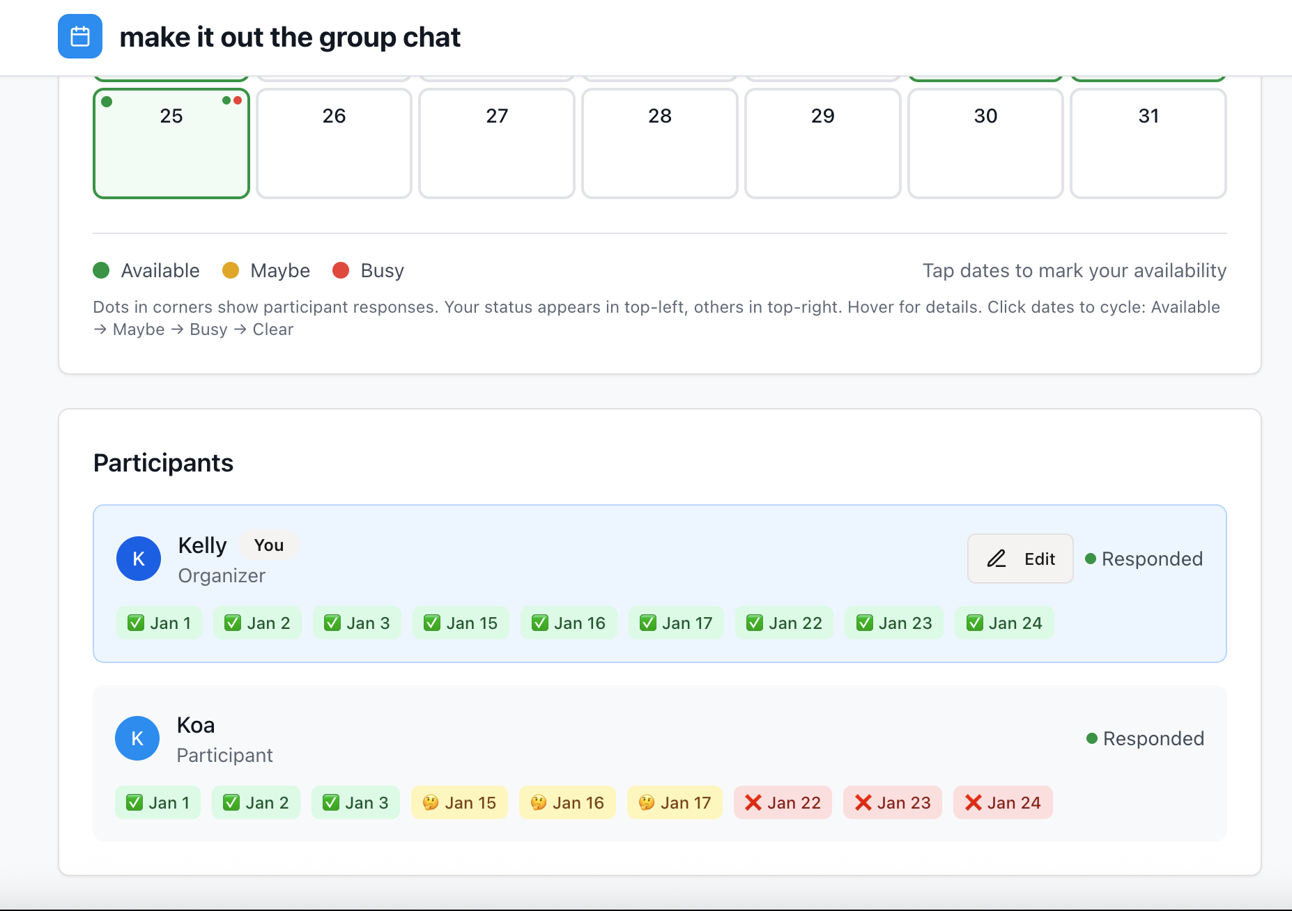 I felt this friction firsthand. The problem was alignment - there was easy way for friends to share availability or converge on a date without endless back-and-forth.