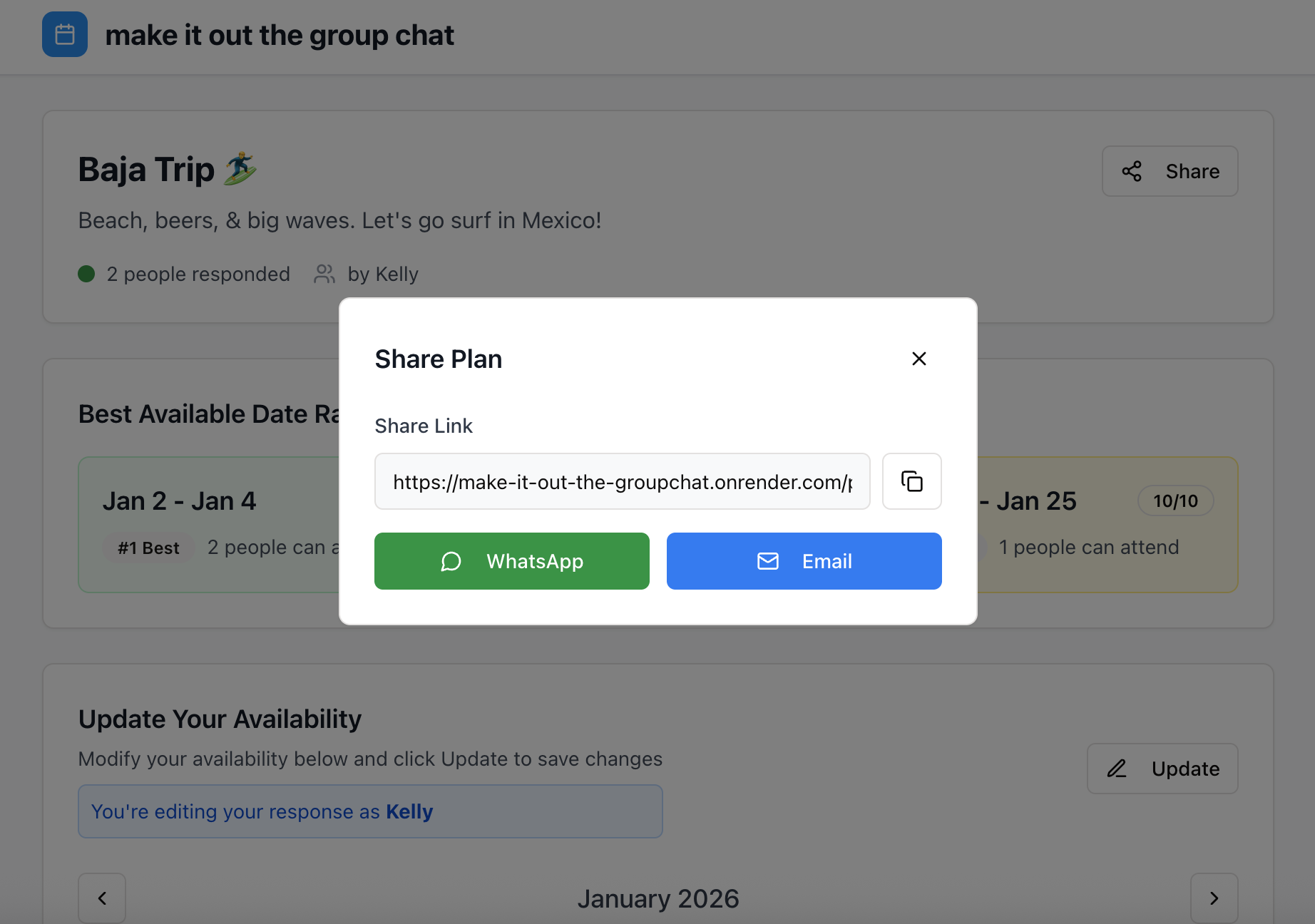 So I built "Make it out the group chat"—a lightweight web app designed to do one thing well: help plans leave the group chat.